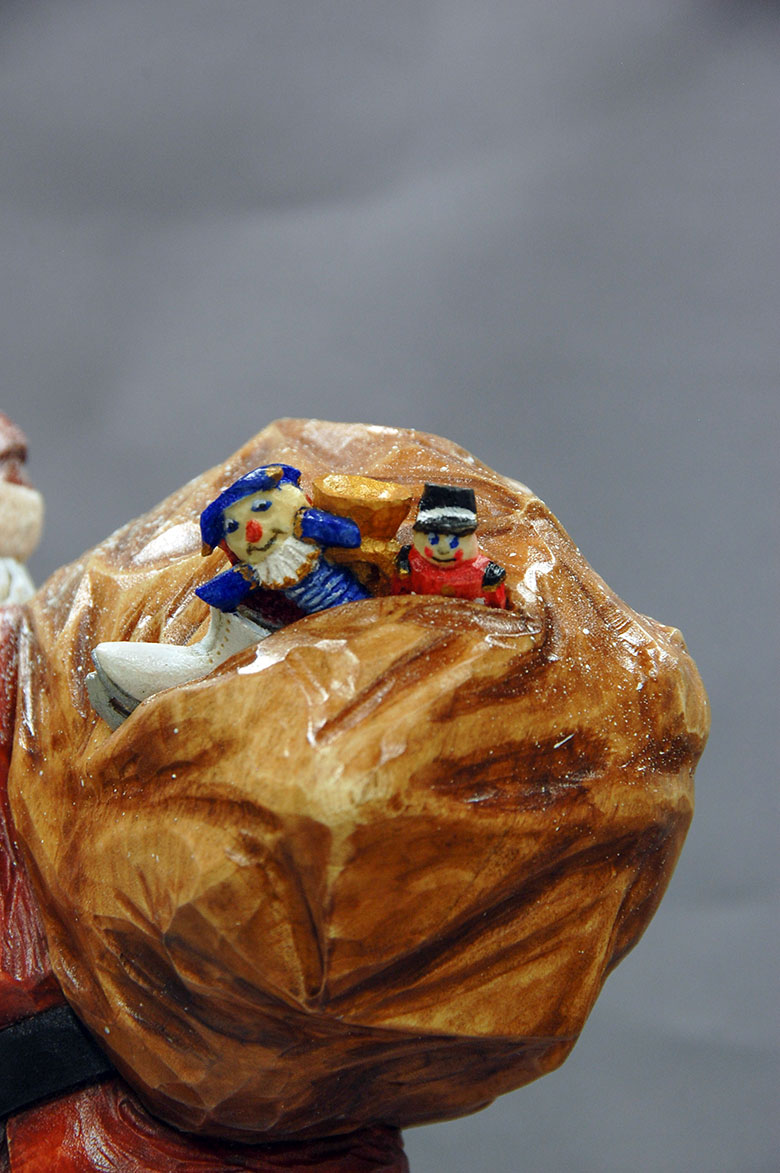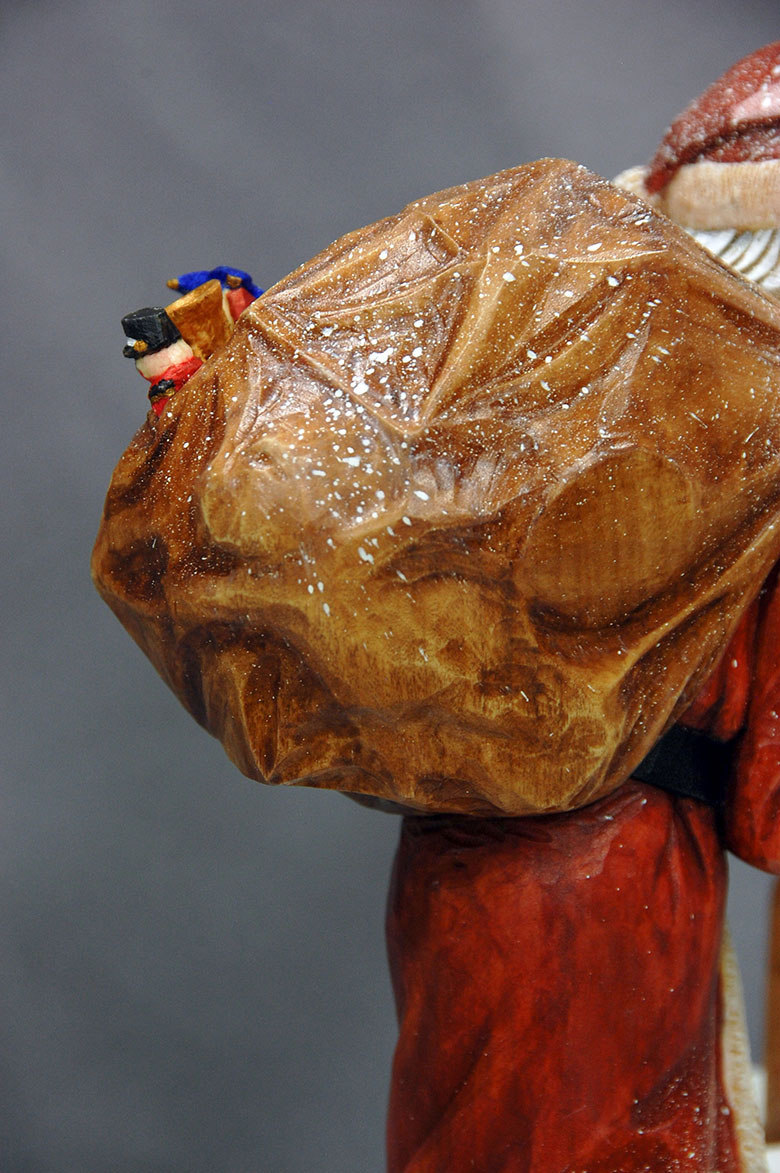 With any carving, it’s important to get the overall anatomy correct. But for me, the fun comes when it’s time to add details. I prefer realistic carvings because I can really add as much detail as I want. Scroll through the gallery of photos to see not only how anatomy affects the pose of the Santa, but also how it’s possible to add all sorts of fun detail to your carvings.